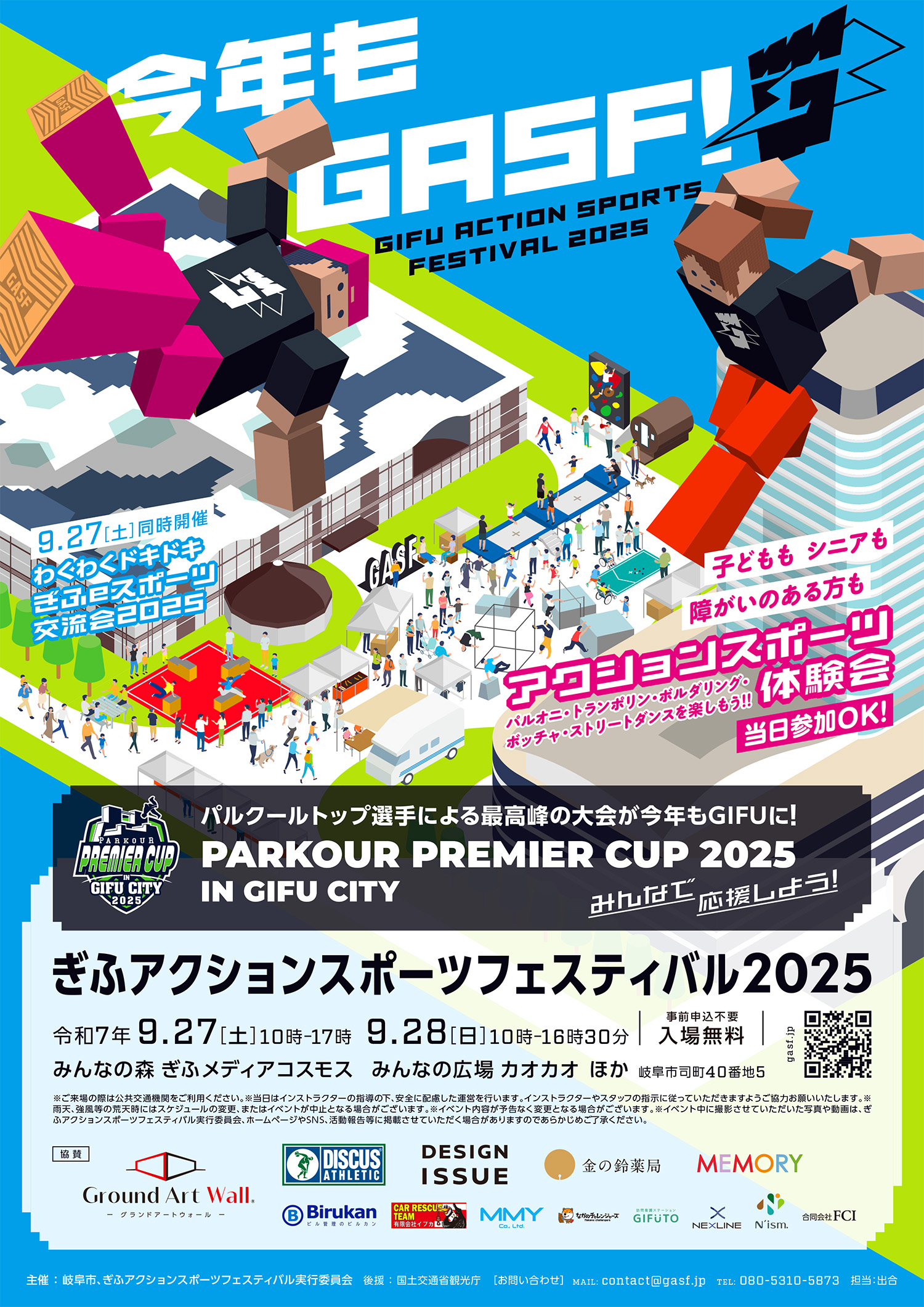 岐阜県岐阜市 みんなの森 ぎふメディアコスモスにて開催の、ぎふアクションスポーツフェスティバル2025に協賛致します。