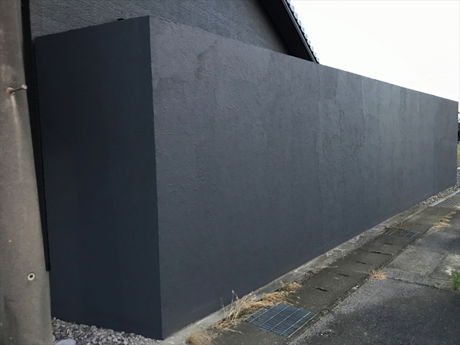 街道沿いに面した部分を遮閉するため、高さ2.5m・長さ16mのグランドアートウォールを施工しました。