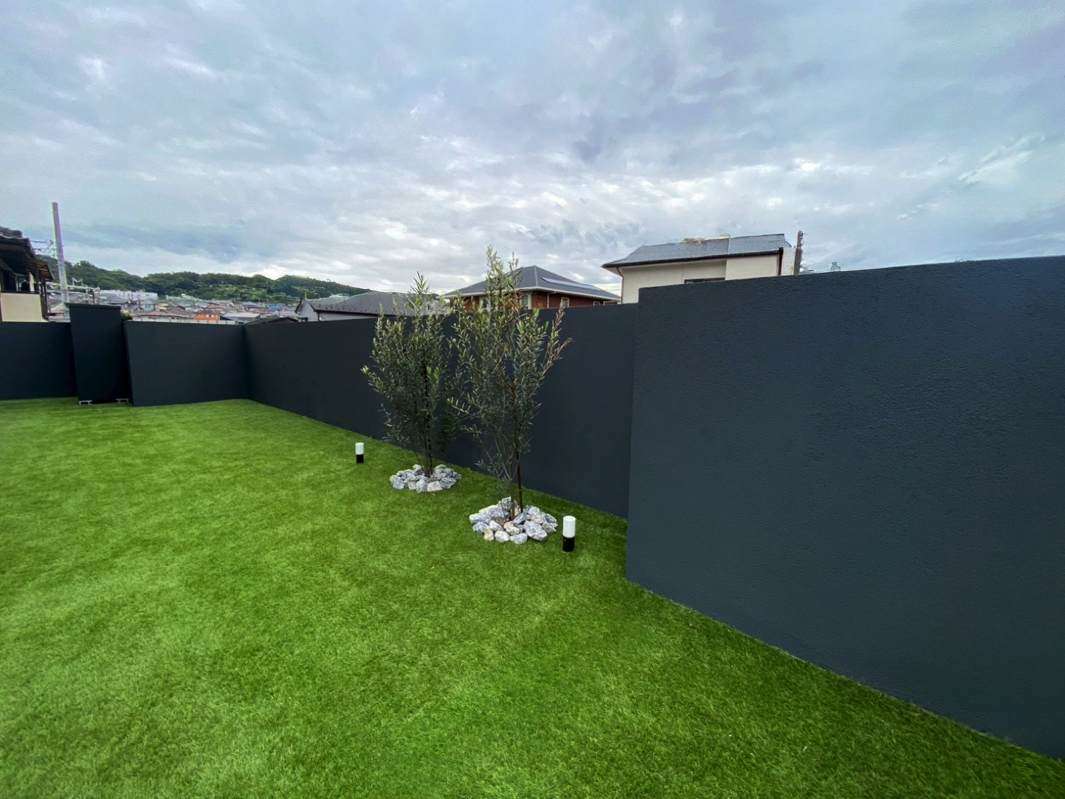 ほどよい高さの塀が視線を遮りつつ、圧迫感のない開放的なプライベート空間を実現しました。