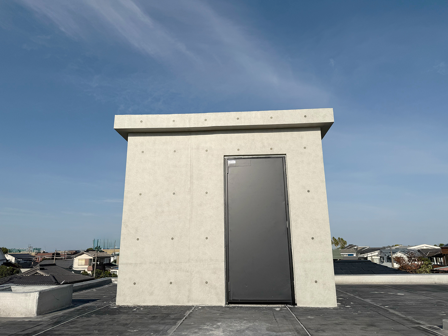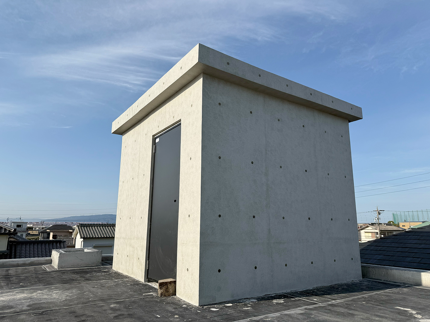 特殊発泡素材を用いたグランドアートウォールで、屋上に倉庫を施工しました。