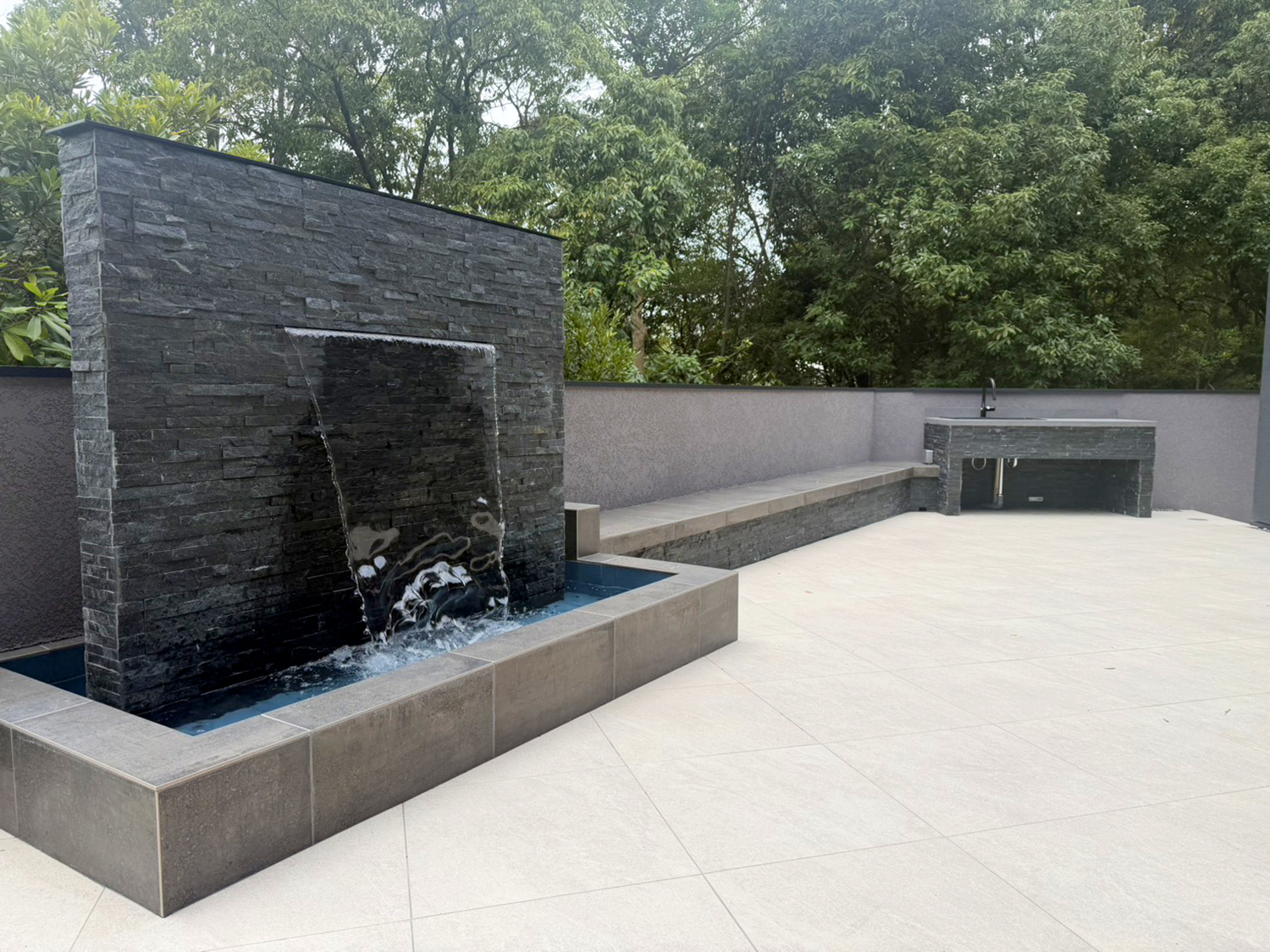 ガーデンキッチンを設置し、水音を聞きながらバーベキューができる憩いのスペースを確保。