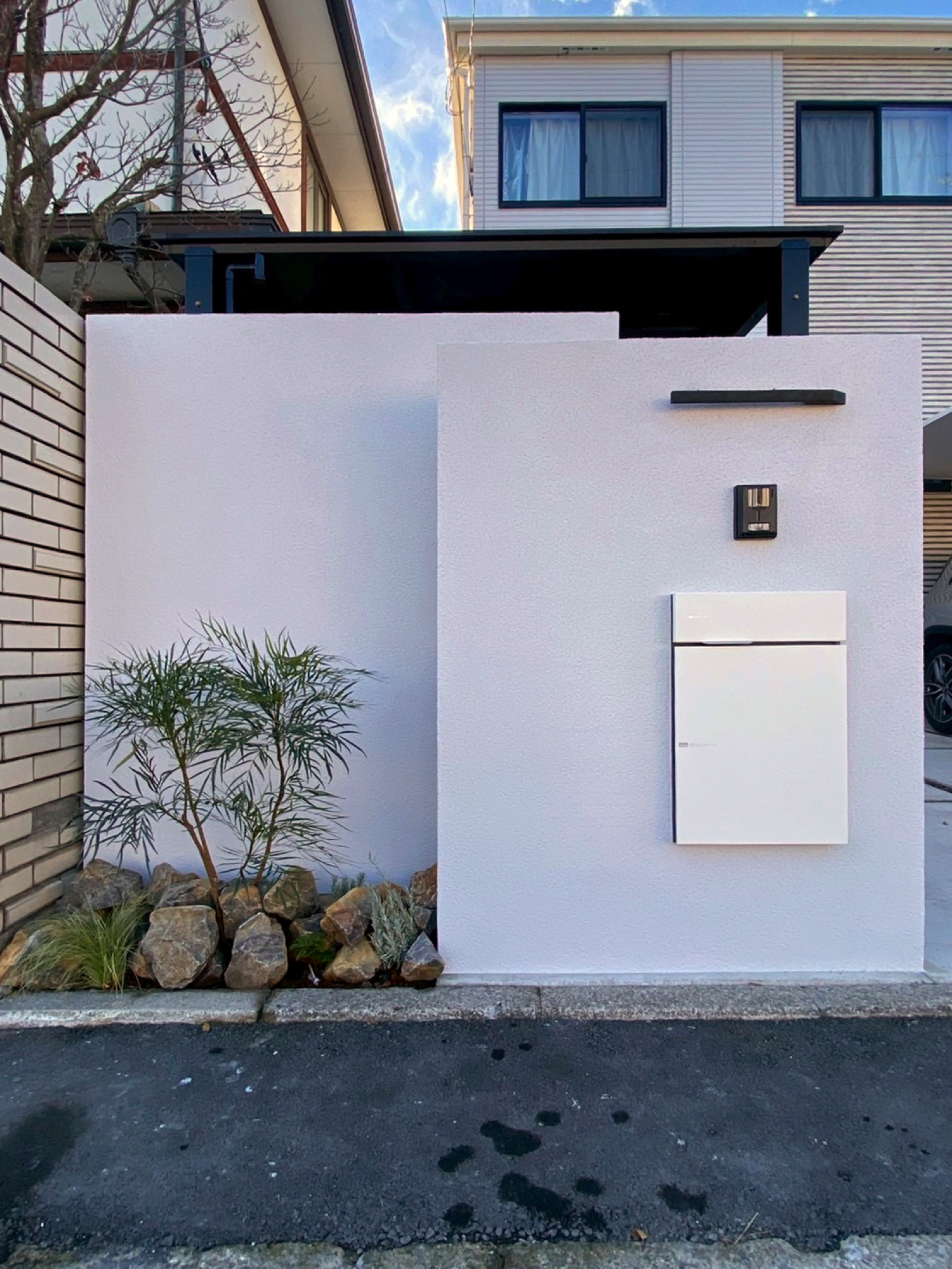 門柱にはポストや表札スペースを確保し、機能性と美観を両立しています。