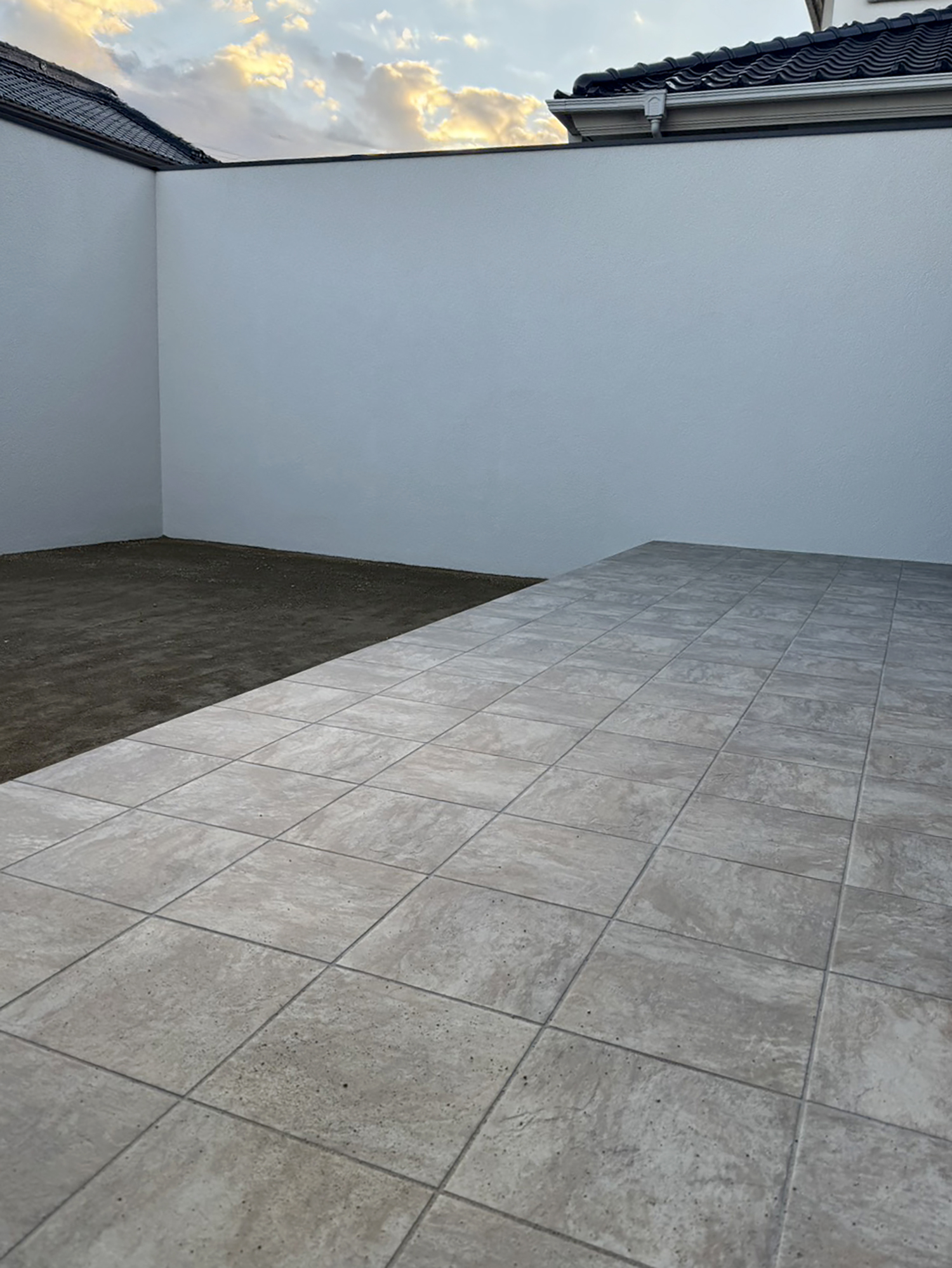 シンプルで美しい壁面が住まい全体の印象を引き締め、プライバシーとデザイン性を両立した外構が完成しました。