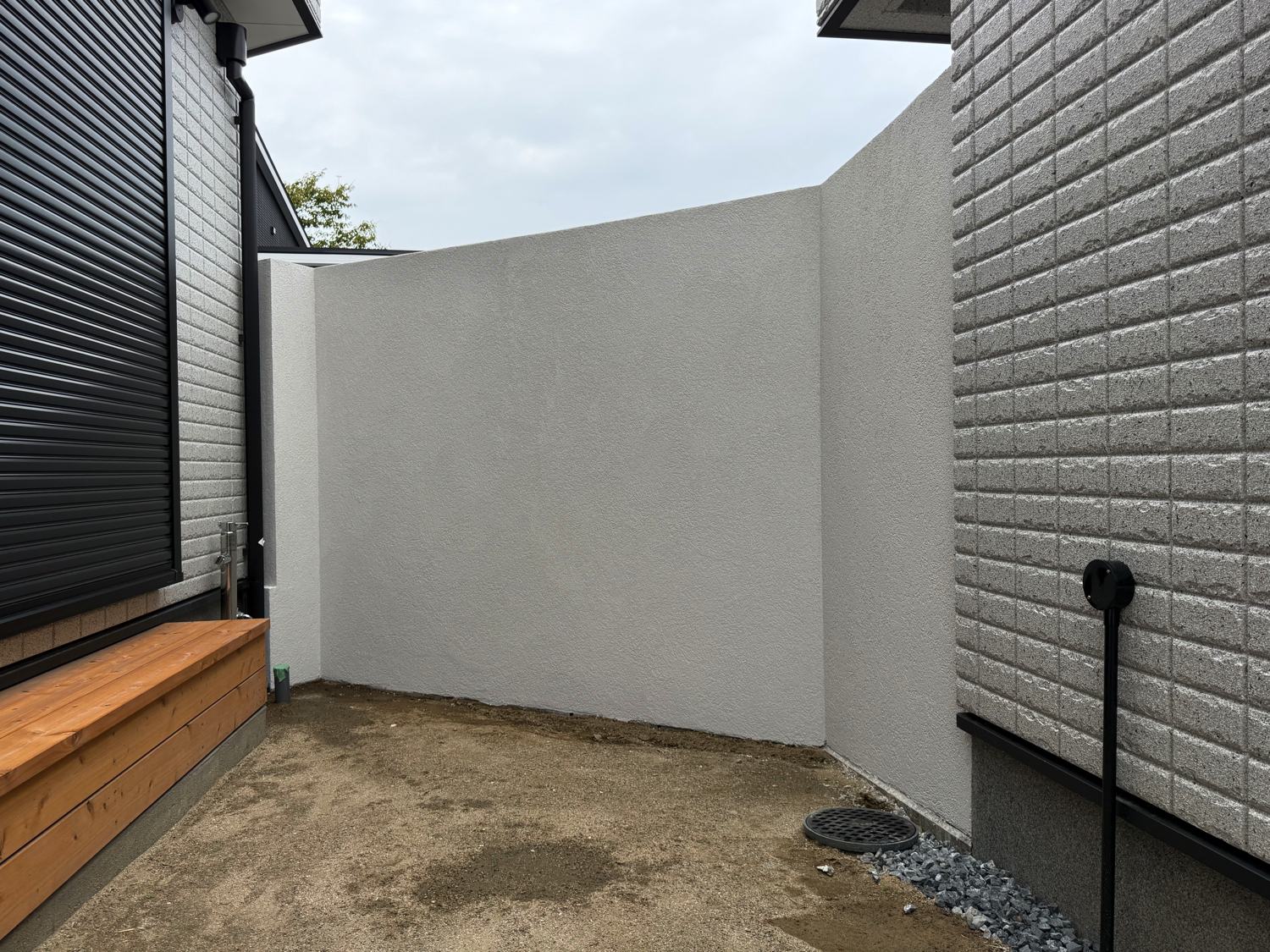 建物外観に調和する目隠しとして、グランドアートウォールを施工しました。