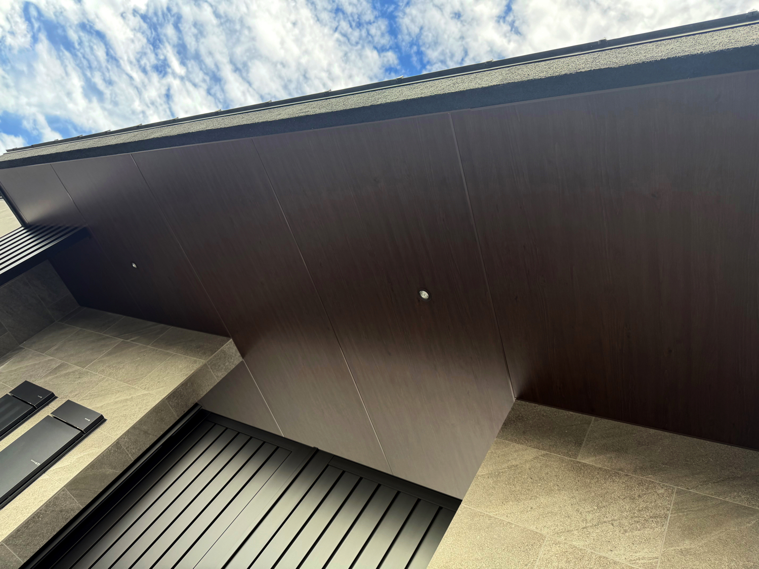 天井にはエバーアートボードを用い、外構全体に一体感と上質感を付加しています。