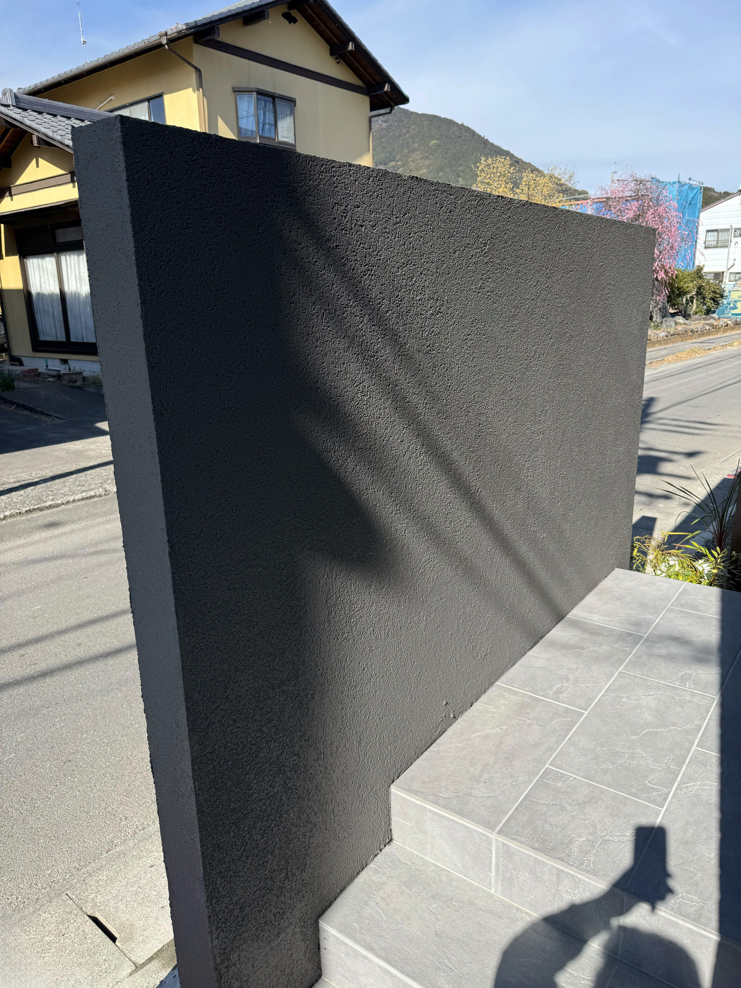 塀の高さ1.6m、長さ2.6mの門柱としてグランドアートウォールを施工いたしました。