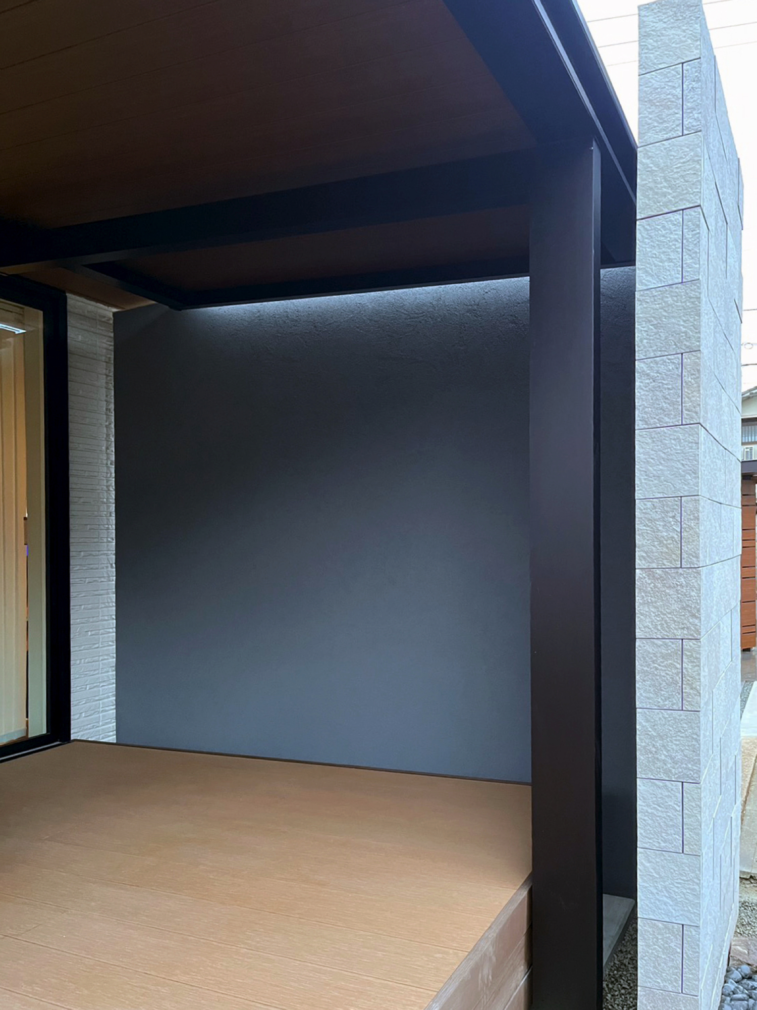 これまでシェードで目隠しをされていたウッドデッキスペースに設置し、安定感のある目隠し空間を実現しています。