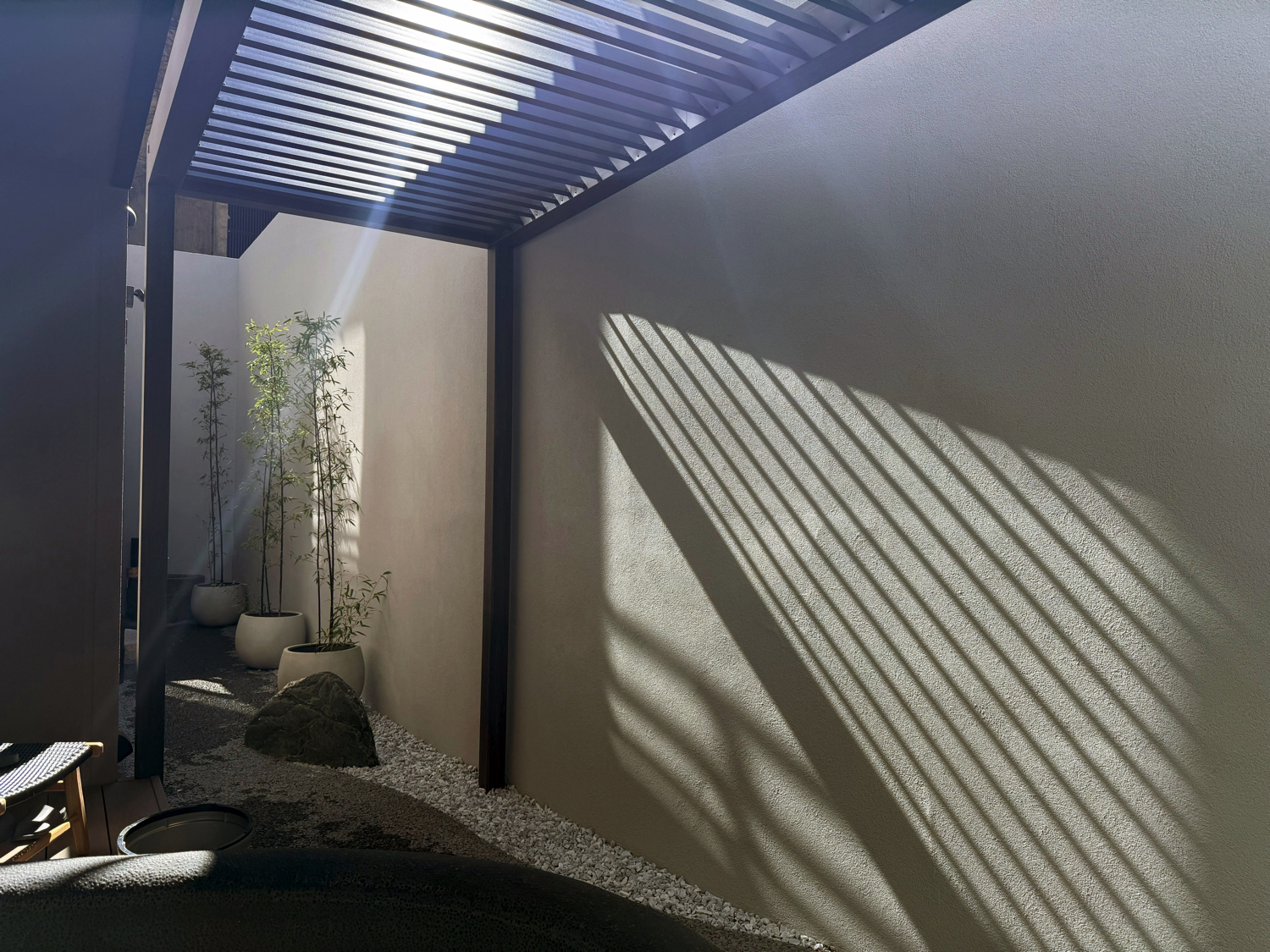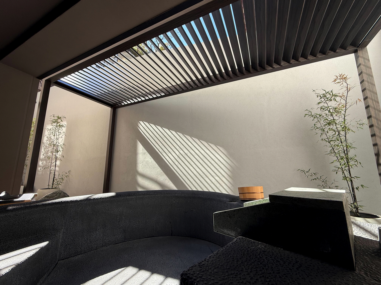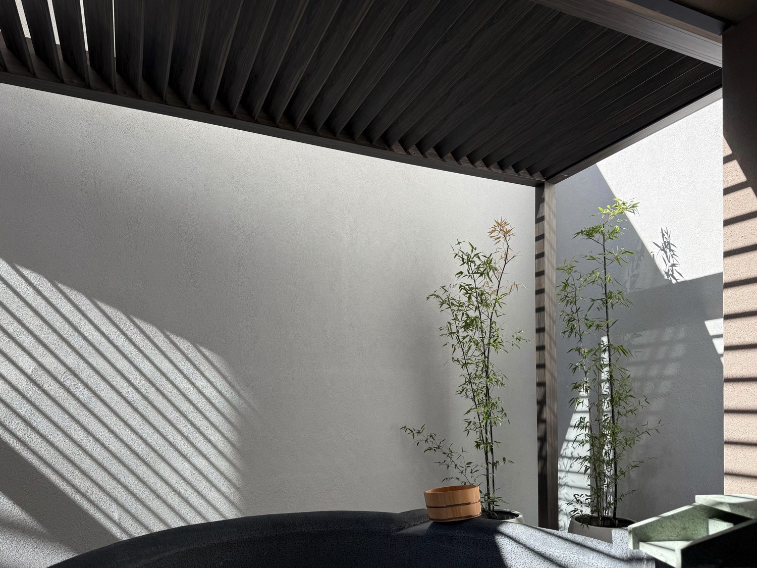 施設の客室露天風呂の目隠しとして採用いただき、十分な高さで外部からの視線をしっかりと遮断しています。