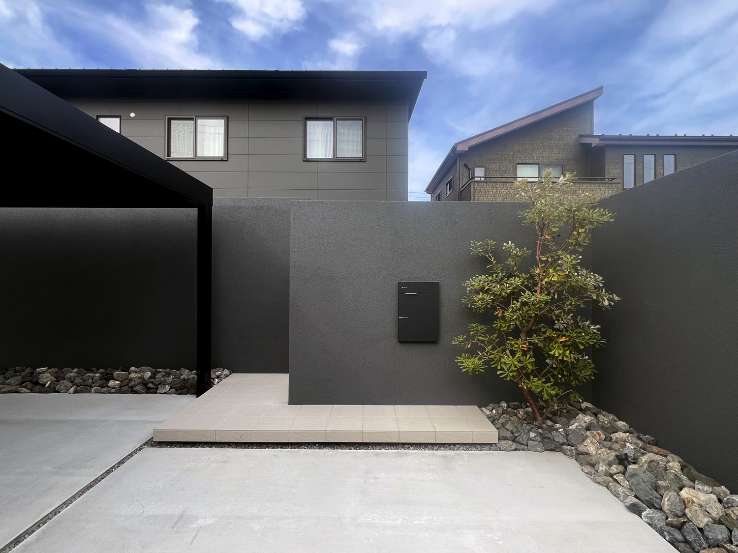 新築外構一式として、グランドアートウォールを採用した外構を施工いたしました。