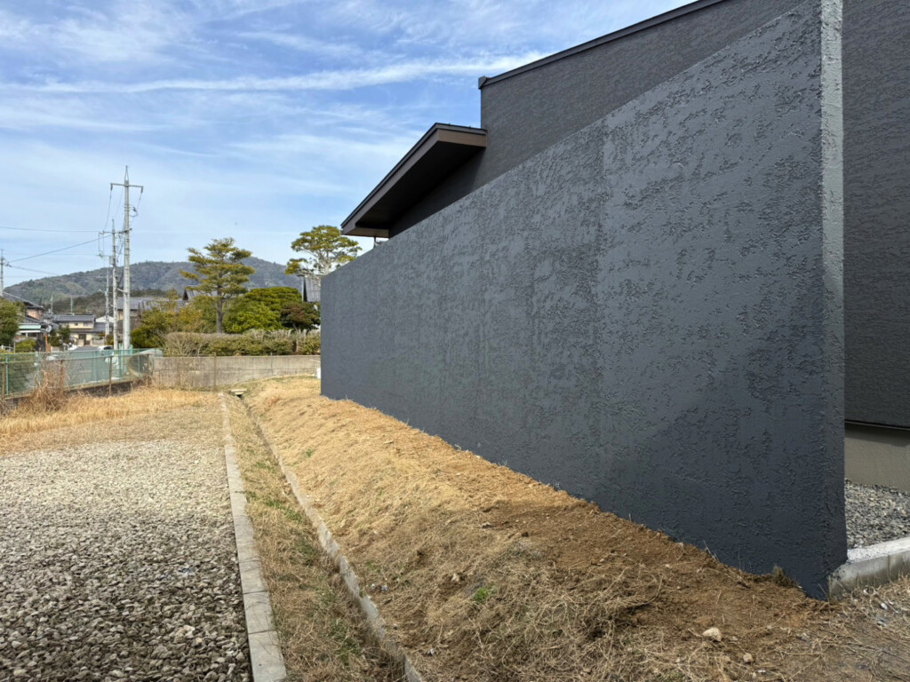 仕上げにはジョリパット「ミーティア」を採用し、落ち着きのある質感が建物外観と調和し、統一感のある外構に仕上がりました。